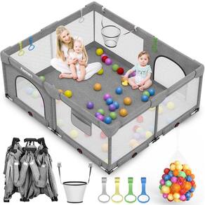 - ÁREA DE RECREAÇÃO DE SEGURANÇA PARA BEBÊS: Este cercadinho infantil possui uma estrutura robusta que garante estabilidade e segurança. As quatro alças fornecem suporte adicional e facilitam a movimentação das crianças dentro do cercadinho, conforme necessário. Além disso, ele vem com 50 bolas oceânicas e uma cesta, adicionando elementos extras de diversão e estimulação sensorial para seu filho.