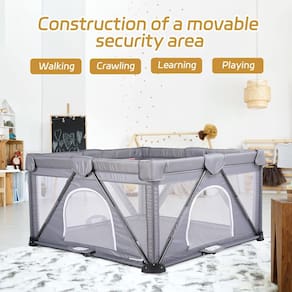 Centro de recreação infantil grande — Este cercadinho extra grande é perfeito para bebês brincarem com brinquedos, pais, amigos e animais de estimação devido ao grande espaço interno. Seu filho vai adorar esta nova área de recreação e explorar sua alegria dentro deste lindo e divertido centro de recreação. Sua altura projetada permite que seus filhos andem se puder e também é adequado para engatinhar e se mover. O pacote vem com 2 alças e 1 bolsa de armazenamento. Material ecológico premium — Este jardim portátil para bebês é feito de tecido Oxford atualizado de alta densidade, que é resistente a poeira e durável, livre de BPA e não agride a pele humana, e também é simples de limpar com o pano úmido. A lavagem à mão é altamente recomendada. Malha respirável e ventosa antiderrapante — Esta cerca para brincar com bebês foi projetada com malha respirável nos painéis laterais, é macia e visível de fora para dentro com pequenos orifícios e também costurada com zíperes de qualidade para entrar e sair para facilitar a interação com seu filho. Existem 4 ventosas na parte inferior para evitar que o cercadinho se mova e permaneça firmemente em sua posição para garantir maior segurança. ADEUS À BAGUNÇA E AO CAOS — Esta caneta de brincar para crianças pequenas é uma assistente de babá eficiente para mães, você não precisa limpar toda a bagunça depois de brincar e também pode ser usada como área de armazenamento de muitos brinquedos. As mães liberam as mãos enquanto cuidam de bebês e fazem suas próprias coisas. Se possível, as mães podem interagir com as crianças dentro e fora do cercadinho com a versão visível e aberta através do zíper fechamento superior. JUNTAS FÁCEIS DE MONTAR E ATUALIZAR - Este portão de recreação para bebês é fácil de montar e desmontar com as instruções. Os tubos são feitos de tubos de liga resistente à ferrugem e conexões de ABS, que são difíceis de dobrar e quebrar, tornando o cercadinho mais estável e duradouro. Se você tiver alguma dúvida ou problema ao usar este produto, sinta-se à vontade para entrar em contato conosco, responderemos em 24 horas e resolveremos seus problemas. - Seguro e durável: o cercadinho para bebês é feito de tecido oxford 300D. A Play Pen realizou mais de 10.000 testes de tração no laboratório ASTM. Além disso, o cercadinho adotou uma estrutura metálica reforçada e adicionou gel de sílica antiderrapante para aumentar sua estabilidade. Fácil de montar: o cercadinho dobrável atualizado para bebês pode ser instalado e removido em minutos. Essa inovadora tecnologia de dobragem resolve completamente o problema de montagem difícil. Este cercadinho passou pela certificação cpc e obteve a patente americana - Fácil de transportar: a estrutura atualizada do cercadinho portátil permite que ele seja armazenado de forma compacta na bolsa de transporte fornecida com alças. Como ocupa apenas uma pequena quantidade de espaço, você pode levá-lo para qualquer lugar interno ou externo, como parques, pastagens, praias - 360° View Surround: O design da estrutura de ventilação de malha lateral traz boa visão e sensação de segurança suficiente para mães e bebês. O design externo do zíper não só permite que você interaja com seu bebê a qualquer momento, mas também evita que o bebê se machuque ao abrir o zíper e sair. Atendimento ao cliente: se você tiver alguma dúvida, na Amazon, e nossa equipe de atendimento ao cliente atenderá você
