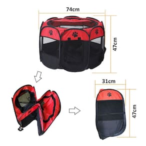 Cercadinho Para Cachorros Gatos Dobrável Casinha Portátil Cor: Vermelha Este cercadinho para pets, como cão, gato, coelho e hamster, é uma solução prática e conveniente para criar um espaço seguro e delimitado onde seu animal de estimação possa brincar, descansar e se sentir protegido. Por ser dobrável e de fácil montagem, este cercadinho é especialmente útil em situações em que você precisa conter seu pet temporariamente, como em viagens, acampamentos, visitas a amigos ou familiares, ou mesmo em casa para criar uma área controlada.