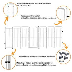Benefícios: - É fixado com parafusos que acompanham o produto - Leve e fácil de montar - Fácil de guardar por ser dobrável - Ótimo custo benefício - Restringe espaços para pets de até grande porte - Alta durabilidade pintura antiferrugem