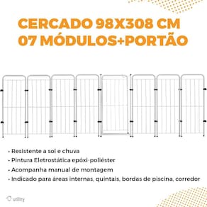 Cercado Cachorro Caes Grande Portao + 7 Modulos 308x98cm Cor: Branco Bem-vindo à UTILITY