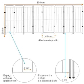 Benefícios: - É fixado com parafusos que acompanham o produto - Leve e fácil de montar - Fácil de guardar por ser dobrável - Ótimo custo benefício - Restringe espaços para pets de até grande porte - Alta durabilidade pintura antiferrugem