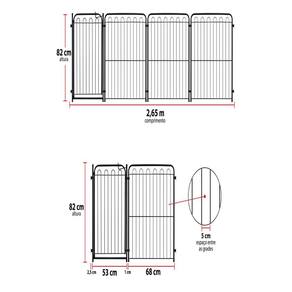 Ficha Técnica: • 3 Módulos + Portão • Medida Módulo: 65x87,5x2 cm • Medida Portão: 65x53x3 cm • Dimensão Embalado: 83x69x9 cm • Comprimento Máximo 3 Módulos+Portão: 2,65 m • Peso: 4,915 Kg • Cor: Preto