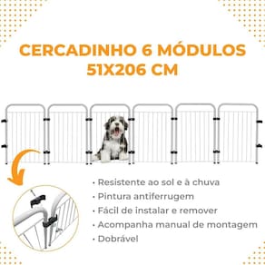 Benefícios: - Pode ser fixado com parafusos - Leve e fácil de montar - Fácil de guardar por ser dobrável - Ótimo custo benefício - Restringe espaços para maioria dos pets de pequeno e médio portes - Alta durabilidade por ser feito em aço e ter tratamento antiferrugem