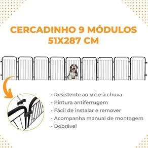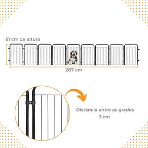 Cercado Caes Pet Cachorro Grade Cerca 9 Módulos 51 cm Altura Cor: Preto Bem vindo à UTILITY Somos uma loja online especializada em utilidades PET, utilidades Domésticas e produtos Pegue e Faça você mesmo Entrega rápida, qualidade garantida e compra 100% segura Descrição do Produto: - 01 Cercadinho Dobrável Benefícios: - Pode ser fixado com parafusos - Leve e fácil de montar - Fácil de guardar por ser dobrável - Ótimo custo-benefício - Restringe espaços para maioria dos pets de pequeno e médio portes - Alta durabilidade por ser feito em aço e ter tratamento antiferrugem Indicado para: - Pets de pequeno e médio porte que não tendem a empurrar ou saltar o cercado. - Apartamentos e casas - Portas, vãos pequenos e corredores Especificações: - Material: Aço Carbono - Cor: Branco ou Preto Aberto: - Altura: 51 cm - Largura máxima: 287 cm - Profundidade: 2 cm Fechado: - Altura 56 cm - Largura 33 cm - Profundidade 10 cm Medida do módulo: - Altura: 51 cm - Comprimento: 31 cm Espessura do aramado e tubo: - Tubo 1,6 cm - Aramado 3 mm Espaço entre as grades: - 4 cm Espaço entre aramado e tuto Parte superior do módulo : - 6,5cm Espaço entre aramado e solo Parte inferior : - 2,5cm Outros conjuntos disponíveis com 50 cm de altura: - Módulo avulso, possui 31 cm - Conjunto 3 módulos, possui 95 cm - Conjunto 4 módulos, possui 1,27 metros - Conjunto 5 módulos, possui 1,59 metros - Conjunto 6 módulos, possui 1,91 metros - Conjunto 7 módulos, possui 2,23 metros - Conjunto 8 módulos, possui 2,55 metros - Conjunto 9 módulos, possui 2,87 metros - Conjunto 10 módulos, possui 3,19 metros É possível encontrá-los visitando nossa página Ao pesquisar por Cercados, será apresentado todos os modelos disponíveis em nosso catálogo. Utilize os filtros para encontrar a quantidade de módulos desejada. : 6 meses por defeito de fabricação. Entrega: Assim que recebemos seu pedido, fazemos a postagem em até 24h. Aguardamos seu retorno Obrigado Equipe Utility Cod: FB02Cerc50