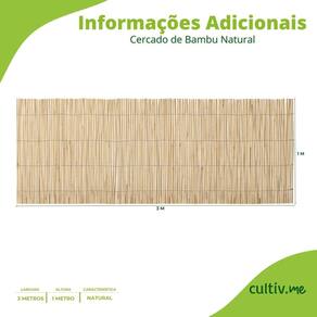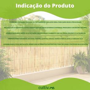 Características * Produto: Cercado de Bambu para Ocultação * Marca: TOP GARDEN * Material: Bambu natural * Altura: 1 metro * Comprimento: 3 metros * Cor: Natural * Formato: Painel flexível * Aplicação: Jardins, varandas, sacadas, muros, cercas e áreas decorativas