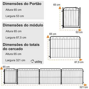 Conteúdo da Oferta: - 01 Portão Modular Cor Preto - 03 Módulos na Cor Preto - 06 Abraçadeiras para unir as partes do cercado - 04 Abraçadeiras para fixação