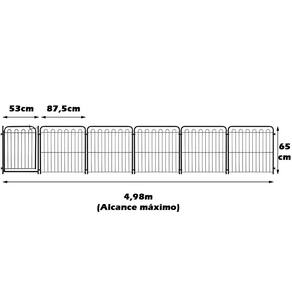 Indicado para: proteger, adestrar ou restringir o espaço dos pets em quintais, piscinas, salas, corredores, escadas, adequando-se a todos os tamanhos de pet. Fabricado em aço carbono com tratamento anticorrosivo e pintura a pó epóxi, ponteiras, articuladores e fixadores em polipropileno de qualidade. Super prático, possui 5 módulos + 1 portão e articuladores utilizados para realizar a união dos módulos e portão facilmente, sem precisar de ferramentas. Pode ser montado de diferentes formas, pois os módulos e o portão são independentes. Utilize em linha reta para fechar um corredor, em círculo ou então fixado na parede ou batente pois acompanha também fixadores, parafusos e buchas.