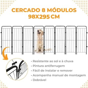 Benefícios: - Fácil e rápido de montar - Parafusos para montagem inclusos - Dobrável, fácil de guardar - Restringe espaços para pets de até grande porte - Pintura super-resistente - Modular: você pode conectar outros cercados e expandir ainda mais a área protegida para seu pet