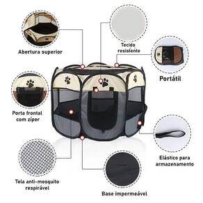 Cercado Grande Tenda Pet Dobrável Portátil Cão Gato Cinza Ofereça mais conforto e segurança para seu pet com este prático cercadinho dobrável Ideal para gatos, cães de médio e grande porte, coelhos, porquinhos-da-índia e até hamsters, ele é perfeito para momentos de descanso, brincadeiras ou até mesmo viagens. Cores: Cinza e bege Tamanho montado: 91 cm diâmetro x 59 cm altura Tamanho dobrado: 59 cm x 37 cm x apenas 3 cm de altura - cabe em qualquer cantinho Principais vantagens: Portátil e leve: Dobra facilmente, ideal para transporte e armazenamento. Versátil: Pode ser em casa, quintal, camping ou até mesmo em viagens. Abertura superior e frontal com zíper: Mais praticidade para interagir com seu pet. Tela respirável em todas as laterais: Ventilação garantida e visibilidade total. Material resistente e durável: Estrutura reforçada e tecido lavável. Raças indicadas exemplos : Cães médios e grandes: Chihuahua, Spitz Alemão Anão Lulu da Pomerânia , Pinscher Miniatura, Yorkshire Terrier, Shih Tzu, Lhasa Apso, Maltês, Bichon Frisé, Poodle Toy, Poodle Miniatura, Dachshund Miniatura Teckel , Papillon, Pequinês, Pug, Boston Terrier, Cavalier King Charles Spaniel, Havanês, Coton de Tuléar, Schnauzer Miniatura, West Highland White Terrier, Cairn Terrier, Norfolk Terrier, Norwich Terrier, Border Terrier, Jack Russell Terrier, Silky Terrier, Terrier Australiano, Affenpinscher, Grifon de Bruxelas, Japanese Chin, Cão Crista Chinês, Galgo Italiano, Toy Fox Terrier, Schipperke, outros. Gatos de todos os portes Coelhos e roedores de médio e grande porte Palavras-chave para busca: Cercado pet portátil; cercadinho para cachorro; cercado dobrável para gato; cercadinho coelho; cercado pequeno porte; casinha de cachorro portátil; cercado para roedores; cercadinho para animais; canil dobrável; cercado desmontável para pets; playpen pets; cercado gatos e cães; viveiro portátil.