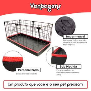 CERCADO ARAMADO PORQUINHO DA ÍNDIA 40X80 CM BRANCO COM BANDEJA HIGIÊNICA IMPERMEÁVELPara você que ama o seu Pet e deseja proporcionar o melhor lugar para ele, os cercados aramados são a sua melhor opção. Eles são compostos de telas aramadas de aço e conectivos de plástico, que é a combinação ideal para uma melhor organização, durabilidade e segurança para o seu animalzinho, além de se adaptar muito bem ao ambiente.É importante que o Pet tenha espaço suficiente para ficar confortável no seu dia a dia, por isso a escolha do cercado deve ser feita com cuidado.Nesse modelo, o cercadinho pet acompanha um tapete higiênico para facilitar a limpeza do espaço. Além desse benefício, a bandeja para cercado oferece outras vantagens como a facilidade para guardar e manusear, seu encaixe perfeito e o fato de ser impermeável, não absorvendo líquidos.RECOMENDAÇÕES DE USO:- Tamanho ideal para 1 Porquinho da ÍndiaDIMENSÕES APROXIMADAS: - Largura: 40cm - Comprimento: 80cm - Altura: 30cmCARACTERÍSTICAS: - Cor: Branco - Material: Aço - Telas: 30x40cm - Malha: 5cm - Modelo: Simples - Forração: Tapete Higiênico - Fundo com Telas: Não* Recomendamos que sempre verifique antes da escolha se o seu PET não atravessa a malha das telas (buracos) e/ou se ele não salta pelo cercado.* Possuímos os mais variados tipos de cercados em modelos e tamanhosITENS INCLUSOS:- Kit de telas e conectivos para montagem de um cercado aramado 40x80x30cm- 01 Tapete Bandeja Higiênico * Procurou um modelo e não encontrou? Tem algum projeto específico? Não sabe como aumentar seu cercado? Deixe-nos saber e vamos te ajudar!OBSERVAÇÕES:- O produto vai desmontado para ser montado no local e igual a imagem do anúncio;- Recomendamos para porquinhos da índia e coelhos, cercados com forração (Soft/Lona/Polionda/Tapete Higiênico);- Para colocação dos conectivos é preciso fazer um pouco de pressão, por isso sugerimos o uso de um martelinho de borracha (não acompanha o produto). - Imagens ilustrativas - Não nos responsabilizamos pelo uso inadequado do produtoNão deixe de conhecer nossos outros produtos! Marca: Iguanna