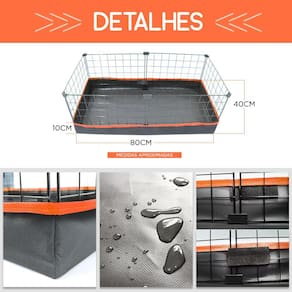 CERCADO ARAMADO PORQUINHO DA ÍNDIA 40X80 CM PRETO COM BANDEJA HIGIÊNICA IMPERMEÁVELPara você que ama o seu Pet e deseja proporcionar o melhor lugar para ele, os cercados aramados são a sua melhor opção. Eles são compostos de telas aramadas de aço e conectivos de plástico, que é a combinação ideal para uma melhor organização, durabilidade e segurança para o seu animalzinho, além de se adaptar muito bem ao ambiente.É importante que o Pet tenha espaço suficiente para ficar confortável no seu dia a dia, por isso a escolha do cercado deve ser feita com cuidado.Nesse modelo, o cercadinho pet acompanha um tapete higiênico para facilitar a limpeza do espaço. Além desse benefício, a bandeja para cercado oferece outras vantagens como a facilidade para guardar e manusear, seu encaixe perfeito e o fato de ser impermeável, não absorvendo líquidos.RECOMENDAÇÕES DE USO:- Tamanho ideal para 1 Porquinho da ÍndiaDIMENSÕES APROXIMADAS: - Largura: 40cm - Comprimento: 80cm - Altura: 30cmCARACTERÍSTICAS: - Cor: Preto - Material: Aço - Telas: 30x40cm - Malha: 5cm - Modelo: Simples - Forração: Tapete Higiênico - Fundo com Telas: Não* Recomendamos que sempre verifique antes da escolha se o seu PET não atravessa a malha das telas (buracos) e/ou se ele não salta pelo cercado.* Possuímos os mais variados tipos de cercados em modelos e tamanhosITENS INCLUSOS:- Kit de telas e conectivos para montagem de um cercado aramado 40x80x30cm- 01 Tapete Bandeja Higiênico * Procurou um modelo e não encontrou? Tem algum projeto específico? Não sabe como aumentar seu cercado? Deixe-nos saber e vamos te ajudar!OBSERVAÇÕES:- O produto vai desmontado para ser montado no local e igual a imagem do anúncio;- Recomendamos para porquinhos da índia e coelhos, cercados com forração (Soft/Lona/Polionda/Tapete Higiênico);- Para colocação dos conectivos é preciso fazer um pouco de pressão, por isso sugerimos o uso de um martelinho de borracha (não acompanha o produto). - Imagens ilustrativas - Não nos responsabilizamos pelo uso inadequado do produtoNão deixe de conhecer nossos outros produtos! Marca: Iguanna