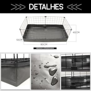 CERCADO ARAMADO PORQUINHO DA ÍNDIA 40X80 CM PRETO COM BANDEJA HIGIÊNICA IMPERMEÁVELPara você que ama o seu Pet e deseja proporcionar o melhor lugar para ele, os cercados aramados são a sua melhor opção. Eles são compostos de telas aramadas de aço e conectivos de plástico, que é a combinação ideal para uma melhor organização, durabilidade e segurança para o seu animalzinho, além de se adaptar muito bem ao ambiente.É importante que o Pet tenha espaço suficiente para ficar confortável no seu dia a dia, por isso a escolha do cercado deve ser feita com cuidado.Nesse modelo, o cercadinho pet acompanha um tapete higiênico para facilitar a limpeza do espaço. Além desse benefício, a bandeja para cercado oferece outras vantagens como a facilidade para guardar e manusear, seu encaixe perfeito e o fato de ser impermeável, não absorvendo líquidos.RECOMENDAÇÕES DE USO:- Tamanho ideal para 1 Porquinho da ÍndiaDIMENSÕES APROXIMADAS: - Largura: 40cm - Comprimento: 80cm - Altura: 30cmCARACTERÍSTICAS: - Cor: Preto - Material: Aço - Telas: 30x40cm - Malha: 5cm - Modelo: Simples - Forração: Tapete Higiênico - Fundo com Telas: Não* Recomendamos que sempre verifique antes da escolha se o seu PET não atravessa a malha das telas (buracos) e/ou se ele não salta pelo cercado.* Possuímos os mais variados tipos de cercados em modelos e tamanhosITENS INCLUSOS:- Kit de telas e conectivos para montagem de um cercado aramado 40x80x30cm- 01 Tapete Bandeja Higiênico * Procurou um modelo e não encontrou? Tem algum projeto específico? Não sabe como aumentar seu cercado? Deixe-nos saber e vamos te ajudar!OBSERVAÇÕES:- O produto vai desmontado para ser montado no local e igual a imagem do anúncio;- Recomendamos para porquinhos da índia e coelhos, cercados com forração (Soft/Lona/Polionda/Tapete Higiênico);- Para colocação dos conectivos é preciso fazer um pouco de pressão, por isso sugerimos o uso de um martelinho de borracha (não acompanha o produto). - Imagens ilustrativas - Não nos responsabilizamos pelo uso inadequado do produtoNão deixe de conhecer nossos outros produtos! Marca: Iguanna