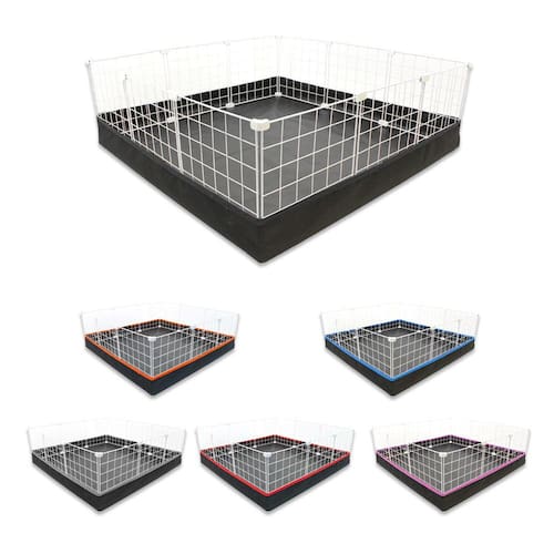CERCADO ARAMADO PORQUINHO DA ÍNDIA 90X90 CM BRANCO COM BANDEJA HIGIÊNICA IMPERMEÁVELPara você que ama o seu Pet e deseja proporcionar o melhor lugar para ele, os cercados aramados são a sua melhor opção. Eles são compostos de telas aramadas de aço e conectivos de plástico, que é a combinação ideal para uma melhor organização, durabilidade e segurança para o seu animalzinho, além de se adaptar muito bem ao ambiente.É importante que o Pet tenha espaço suficiente para ficar confortável no seu dia a dia, por isso a escolha do cercado deve ser feita com cuidado.Nesse modelo, o cercadinho pet acompanha um tapete higiênico para facilitar a limpeza do espaço. Além desse benefício, a bandeja para cercado oferece outras vantagens como a facilidade para guardar e manusear, seu encaixe perfeito e o fato de ser impermeável, não absorvendo líquidos.RECOMENDAÇÕES DE USO:- Tamanho ideal para até 3 Porquinhos da ÍndiaDIMENSÕES APROXIMADAS: - Largura: 90cm - Comprimento: 90cm - Altura: 30cmCARACTERÍSTICAS: - Cor: Branco - Material: Aço - Telas: 30x30cm - Malha: 5cm - Modelo: Simples - Forração: Tapete Higiênico - Fundo com Telas: Não* Recomendamos que sempre verifique antes da escolha se o seu PET não atravessa a malha das telas (buracos) e/ou se ele não salta pelo cercado.* Possuímos os mais variados tipos de cercados em modelos e tamanhosITENS INCLUSOS:- Kit de telas e conectivos para montagem de um cercado aramado 90x90x30cm- 01 Tapete Bandeja Higiênico * Procurou um modelo e não encontrou? Tem algum projeto específico? Não sabe como aumentar seu cercado? Deixe-nos saber e vamos te ajudar!OBSERVAÇÕES:- O produto vai desmontado para ser montado no local e igual a imagem do anúncio;- Recomendamos para porquinhos da índia e coelhos, cercados com forração (Soft/Lona/Polionda/Tapete Higiênico);- Para colocação dos conectivos é preciso fazer um pouco de pressão, por isso sugerimos o uso de um martelinho de borracha (não acompanha o produto). - Imagens ilustrativas - Não nos responsabilizamos pelo uso inadequado do produtoNão deixe de conhecer nossos outros produtos! Marca: Iguanna