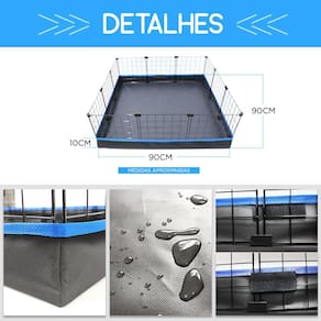 CERCADO ARAMADO PORQUINHO DA ÍNDIA 90X90 CM PRETO COM BANDEJA HIGIÊNICA IMPERMEÁVELPara você que ama o seu Pet e deseja proporcionar o melhor lugar para ele, os cercados aramados são a sua melhor opção. Eles são compostos de telas aramadas de aço e conectivos de plástico, que é a combinação ideal para uma melhor organização, durabilidade e segurança para o seu animalzinho, além de se adaptar muito bem ao ambiente.É importante que o Pet tenha espaço suficiente para ficar confortável no seu dia a dia, por isso a escolha do cercado deve ser feita com cuidado.Nesse modelo, o cercadinho pet acompanha um tapete higiênico para facilitar a limpeza do espaço. Além desse benefício, a bandeja para cercado oferece outras vantagens como a facilidade para guardar e manusear, seu encaixe perfeito e o fato de ser impermeável, não absorvendo líquidos.RECOMENDAÇÕES DE USO:- Tamanho ideal para até 3 Porquinhos da ÍndiaDIMENSÕES APROXIMADAS: - Largura: 90cm - Comprimento: 90cm - Altura: 30cmCARACTERÍSTICAS: - Cor: Preto - Material: Aço - Telas: 30x30cm - Malha: 5cm - Modelo: Simples - Forração: Tapete Higiênico - Fundo com Telas: Não* Recomendamos que sempre verifique antes da escolha se o seu PET não atravessa a malha das telas (buracos) e/ou se ele não salta pelo cercado.* Possuímos os mais variados tipos de cercados em modelos e tamanhosITENS INCLUSOS:- Kit de telas e conectivos para montagem de um cercado aramado 90x90x30cm- 01 Tapete Bandeja Higiênico * Procurou um modelo e não encontrou? Tem algum projeto específico? Não sabe como aumentar seu cercado? Deixe-nos saber e vamos te ajudar!OBSERVAÇÕES:- O produto vai desmontado para ser montado no local e igual a imagem do anúncio;- Recomendamos para porquinhos da índia e coelhos, cercados com forração (Soft/Lona/Polionda/Tapete Higiênico);- Para colocação dos conectivos é preciso fazer um pouco de pressão, por isso sugerimos o uso de um martelinho de borracha (não acompanha o produto). - Imagens ilustrativas - Não nos responsabilizamos pelo uso inadequado do produtoNão deixe de conhecer nossos outros produtos! Marca: Iguanna