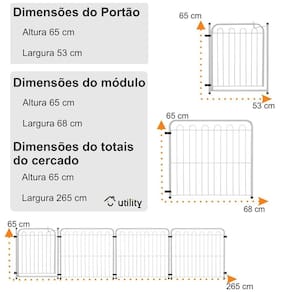 Benefícios: - Possibilidade de uso de uma, duas, três, quatro ou cinco partes do cercado - Acompanha abraçadeiras para fixar o cercado na parede ou porta - Fácil de montar e de desmontar - Fácil de guardar - Protege seu pet
