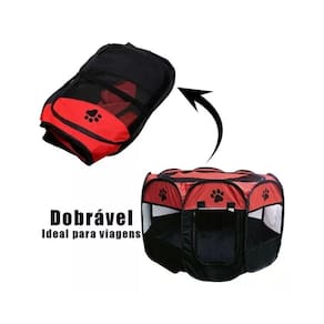 Especificações: - Material: Poliéster e Aço Carbono - Medida: 73cm x 73cm x 43cm - Lavável - Fácil para montar e desmontar - Pode transportar em viagens - Ideal para animais de pequeno porte - Cor: Preto com Vermelho ============================================================ Devido à diferença entre monitores e iluminação diferentes, pode haver variação na tonalidade apresentada no anúncio. Medidas muito aproximadas.