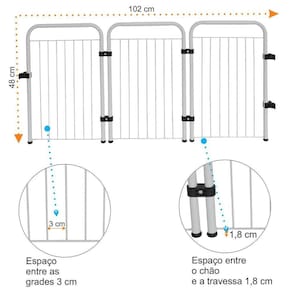 Benefícios: - Pode ser fixado com parafusos ou fita dupla face sem furar - Leve e fácil de montar - Fácil de guardar por ser dobrável - Ótimo custo benefício - Restringe espaços para maioria dos pets de pequeno e médio portes - Alta durabilidade por ser feito em aço e ter tratamento antiferrugem