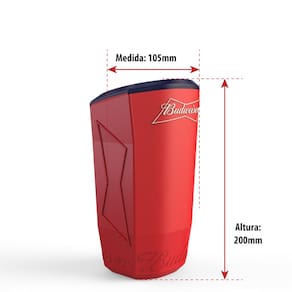 Indicado para: Consumo da cervegela Budweiser em embalagem garrafa de 600ml. Material: PSAI (Poliestireno de Alto Impacto) Capacidade: Uma garrafa de Budweiser de 600ml. Medidas: 136mm de largura x altura 230mm x 132mm de profundidade