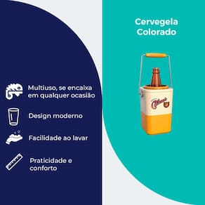 Indicado para: Consumo da cervegela Colorado em embalagem garrafa de 600ml. Material: ABS Capacidade: Uma garrafa de Colorado de 600ml. Medidas: 131mm de largura x 111mm de profundidade x 188mm de altura 205