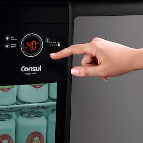 A Cervejeira Consul mais Titanium e tudo o que voce precisa para ter suas cervejas sempre geladas em casa. Com capacidade para ate 75 latinhas, tem prateleiras ajustaveis, por com vidro para visualizacao interna, painel de controle digital, 5 niveis de temperatura e sistema Frost Free.