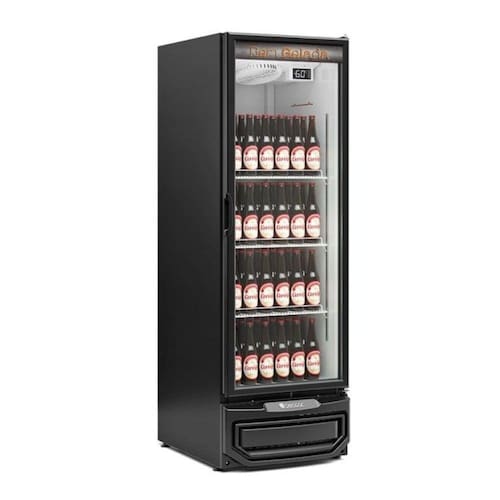 - Conservação e exposição de Cervejas e Bebidas (Água, Sucos e Refrigerantes) - Controlador eletrônico com indicador de temperatura - Refrigeração: Ar forçado com evaporador aletado - Iluminação: 1 barra de LED interna superior - Porta de vidro duplo temperado baixo emissivo (sem aquecimento) - Prateleiras aramadas: 3 níveis reguláveis - Revestimento externo: aço pré-pintado preto - Pés niveladores - Equipamento certificado conforme portaria inmetro - Produto destinado para uso comercial - Vidros sujeitos a condensação da umidade do ar