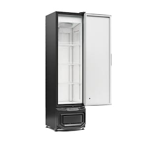 Conta com gás ecológico R290, micro motor eletrônico e condensador estático com ventilação natural, que reduz o nível de ruído. A porta cega em aço tipo inox com adesivo assegura melhor isolamento. O interior em aço pré-pintado branco, exterior em aço pré-pintado preto, e prateleiras aramadas com 3 níveis reguláveis facilitam a organização, enquanto os pés niveladores garantem estabilidade.