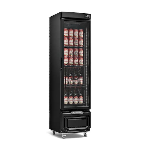 Cervejeira Refrigerador de Bebidas Porta de Vidro GRB23EVGW Gelopar. Conservação e Exposição de Cervejas e Bebidas (Água, Sucos e Refrigerantes). Refrigeração: Ar forçado com evaporador aletado. Temperatura: -6, -4, +1C ou +3C (Modo Economia). Degelo: Automático (frost free). Controlador eletrônico com indicador de temperatura. Revestimento Interno: Aço pré-pintado preto. Revestimento Externo: Aço pré-pintado preto. Iluminação 2 barras de LED internas (perimetral). Porta de vidro triplo temperado baixo emissivo, sem sistema de aquecimento. Com adesivo. Fechamento automático. Prateleiras aramadas. 3 níveis reguláveis + 1 estrado. Gabinete com rodízios (trava nos rodízios frontais). Condensador estático, com ventilação natural. Vidros sujeitos a condensação da umidade do ar. ARMAZENAMENTO: 150 long necks 350ml ou 240 latas 350ml. ONSUMO: 5,37kW/dia. CAPACIDADE: 228L. PESO: 72Kg. TEMPERATURA: -6, -4, +1°C ou +3°C (Modo Economia). DIMENSÕES EXTERNAS (CxAxL): 48x184,6x61cm. Equipamento certificado conforme Portaria Inmetro nº 371/2009. Cervejeira Refrigerador de Bebidas Porta de Vidro GRB23EVGW Gelopar é na Atau.