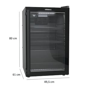 Tipo: Cervejeira Marca: Venax Controlador de temperatura: Digital, regulável de -6C a 0C Sistema de refrigeração: Compressor Gás refrigerante: R134a Iluminação interna: Led branco Porta: Vidro panorâmico Porta vidro duplo: Sim (LOW-E) Puxador da porta: Alumínio pintado Abertura da porta: Esquerda para direita Trava de abastecimento: Não Aquecimento da porta: Sim Prateleiras: 2 Reguláveis Evaporador: Ar forçado Gabinete interno: PSAI Gabinete externo: Aço revestido com pintura eletrostática Degelo: Automático Dreno: Traseiro Recipiente de degelo: Sim Pés: Frontais reguláveis e traseiros com rolete Capacidade de Armazenamento: Lata 350ml: 96 / 473ml: 78 / Longneck 355ml: 48 / Garrafa 600ml: 34 / 1L: 20 Medidas do produto: Altura 80cm - Largura 49,5cm - Profundidade 61cm