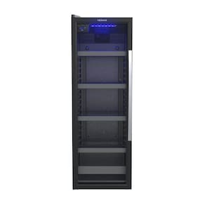 O sistema de refrigeração por compressor, aliado ao gás ecológico R134A e ao isolamento térmico em poliuretano, garante um resfriamento potente e estável, com controle de temperatura digital regulável de 6C a -6C. A porta de vidro duplo Low-E com aquecimento reduz a formação de condensação e preserva a visibilidade interna, enquanto o puxador em alumínio escovado reforça a estética sofisticada do equipamento. A iluminação interna em LED azul oferece um visual moderno e facilita a visualização das bebidas, mesmo em ambientes com pouca luz.