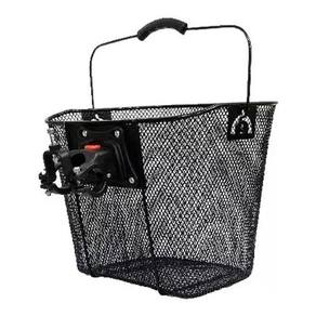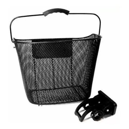 Cesta Cestinha Aramada Preta Bike Bicicleta 26 Com Engate Cesta de transporte grande dianteira em aço preto brilhante para bicicleta aro 26. Vem com kit de instalação contendo suportes de engate rápido. Com estrutura reforçada é ideal para transporte de volumes grandes. Características: Sistema de engate rápido; Não precisa ficar fixada no guidão, pode ser retirada a qualquer momento; Pode ser Utilizado em bicicletas com suspensão dianteira; Com alças de mão; Medidas - 26 cm altura X 33 cm de largura X 25 cm de profundidade. Cor: Preta Marca: Não Informado Ean: 6970284411431