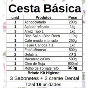 Cesta básica de alimentos+higiene completa 19 produtos N2/h
