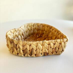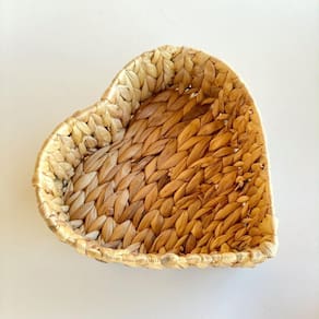 Cesta produzida em fibra natural, em formato de coração.