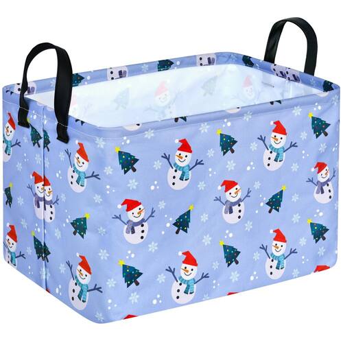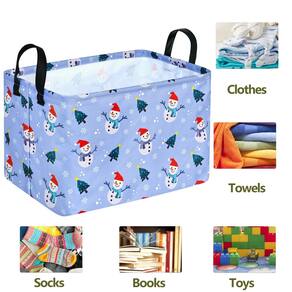 ENJOY A CLEAN & NEAT ROOM NOW Imaging a messy room that all of daily sundries left everywhere. Imaging looking round for the item you need to use urgently in a messy room. Imaging the kids or pets left the sundries all over the place. You need a good helper to help you solve these problems! With our storage bins/laundry hamper, you will have a designated spot to neatly store items and keep your family and living spaces organized and efficient while still being within the comfort of your home. SAVE SPACE IN YOUR RESIDENCE To be a competent helper, it can not only help you organize and store the sundries to save room space, but also can be folded when in no use. SAVE YOUR PRECIOUS TIME We deeply know that time is very precious and important to you. Our storage bins will help you sort and store your contents tidily. Don't waste time to look for them any more! Just feel free to handle big things and leave us small things. ORGANIZE IN STYLE - START FROM NOW ON With modern and stylish design, our storage bins combine both of the ornamental and practical forms. They are not only household life good helpers but also charming decorations. - Distinctive Design: This rectangle christmas kids gift storage basket features a festive that adds a fun, seasonal touch to any space. Perfect as a christmas gift basket or as a holiday decoration, it brings a cheerful atmosphere to your home. - Practical Storage Solution: L:14.9 X W:10.2 X H:8.4 inches , this storage basket is ideal for organizing toys, books, clothes, and other items. It serves as a versatile toy storage bin or shelf basket cube, helping you keep your living space tidy and organized. - Easy Maintenance: Made from high-quality canvas with a waterproof coating on the inside, this storage basket is both sturdy and easy to clean. Its strong construction ensures it can withstand daily use, making it a reliable choice for storing various items. - Convenient Collapsible Design: The basket features a collapsible design for easy storage when not in use, saving valuable space. Whether you're using it for nursery organization or laundry, this foldable basket is practical and adaptable to your needs. - Comfortable Carrying Handles: Equipped with black leather handles, this basket provides a comfortable grip for easy carrying and transport. Whether moving it from room to room or from the car to the house, the handles ensure a smooth and effortless experience.