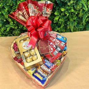 Cesta De Chocolate Formato Coração Com Lindo Laço Presente