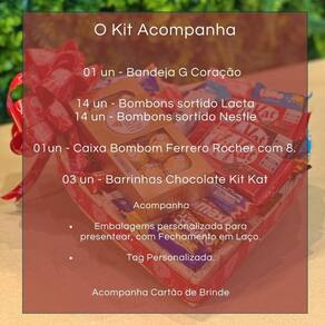 Cesta De Chocolate Formato Coração Com Lindo Laço Presente Tipo: Natal Cesta de Chocolates em Formato de Coração - Surpreenda com Carinho e Sabor Essa linda cesta em formato de coração foi criada para transformar momentos especiais em lembranças doces e inesquecíveis. Com uma seleção das marcas de chocolates mais amadas - Lacta, Nestlé, Kit Kat e Ferrero Rocher - ela é perfeita para quem deseja presentear com afeto, elegância e praticidade. Indicada para datas como Dia das Mães, Dia dos Namorados, aniversários, noivados ou para demonstrar gratidão de forma afetiva. Tudo é preparado com cuidado, montado artesanalmente e pronto para ser entregue diretamente na casa de quem você ama, já com mensagem personalizada inclusa. Destaques do Produto: Um presente cheio de afeto: a cesta em formato de coração encanta pela aparência e pelo sabor Praticidade para quem presenteia: entrega direta com mensagem personalizada enviada por você Embalagem com laço decorativo, pensada para emocionar desde o primeiro olhar Ideal para surpreender em ocasiões românticas, familiares ou corporativas Montagem artesanal, com chocolates frescos das marcas mais queridas Conteúdo da cesta: 14 bombons Lacta 14 bombons Nestlé 3 unidades de Kit Kat 1 caixa de Ferrero Rocher Embalagem com laço decorativo Cartão com mensagem personalizada mensagem enviada após a compra Cesta de chocolate presente, cesta em formato de coração, presente dia das mães, presente dia dos namorados, presente romântico com chocolate, cesta com ferrero rocher, kit chocolate lacta nestlé, presente com mensagem personalizada, presente feminino criativo, cesta de bombom com laço, presente de aniversário, presente afetivo com entrega, cesta de chocolates , mimo doce para surpreender, presente pronto para envio