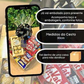 Cesta De Chocolate Formato Coração Com Lindo Laço Presente Tipo: Preto Cesta de Chocolates em Formato de Coração - Surpreenda com Carinho e Sabor Essa linda cesta em formato de coração foi criada para transformar momentos especiais em lembranças doces e inesquecíveis. Com uma seleção das marcas de chocolates mais amadas - Lacta, Nestlé, Kit Kat e Ferrero Rocher - ela é perfeita para quem deseja presentear com afeto, elegância e praticidade. Indicada para datas como Dia das Mães, Dia dos Namorados, aniversários, noivados ou para demonstrar gratidão de forma afetiva. Tudo é preparado com cuidado, montado artesanalmente e pronto para ser entregue diretamente na casa de quem você ama, já com mensagem personalizada inclusa. Destaques do Produto: Um presente cheio de afeto: a cesta em formato de coração encanta pela aparência e pelo sabor Praticidade para quem presenteia: entrega direta com mensagem personalizada enviada por você Embalagem com laço decorativo, pensada para emocionar desde o primeiro olhar Ideal para surpreender em ocasiões românticas, familiares ou corporativas Montagem artesanal, com chocolates frescos das marcas mais queridas Conteúdo da cesta: 14 bombons Lacta 14 bombons Nestlé 3 unidades de Kit Kat 1 caixa de Ferrero Rocher Embalagem com laço decorativo Cartão com mensagem personalizada mensagem enviada após a compra Cesta de chocolate presente, cesta em formato de coração, presente dia das mães, presente dia dos namorados, presente romântico com chocolate, cesta com ferrero rocher, kit chocolate lacta nestlé, presente com mensagem personalizada, presente feminino criativo, cesta de bombom com laço, presente de aniversário, presente afetivo com entrega, cesta de chocolates , mimo doce para surpreender, presente pronto para envio