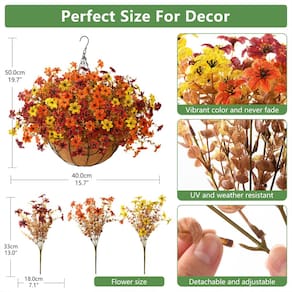 - Vegetação artificial realista: as flores artificiais de outono para o exterior em uma cesta parecem reais e elegantes, tornando-a a cesta suspensa perfeita para sua casa, pátio, varanda, jardim, interior e exterior. Ela floresce o ano todo e adiciona uma sensação de outono à sua casa.