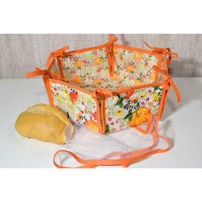 Cesta de Pão em Tecido Dupla Face - Abóbora