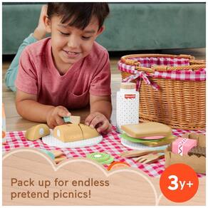 Conjunto de Roleplay Pré-Escolar com Cesta de Piquenique, Comida e Utensílios de Madeira para Brincadeira Criativa Fabricado com madeira de florestas certificadas pelo FSC; embalagem sem plástico Estimula brincadeiras imaginativas e narrativas 31 peças: cesta, cobertor, bandeja, recipiente de bebida, 2 copos, 2 pratos, 6 utensílios e 17 alimentos (frutas, queijo, pão e mais) Jogo criativo inspirado no método Montessori para crianças a partir de 3 anos.