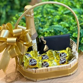 Acompanha cesta decorativa com laço dourado