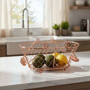 Com alças laterais que facilitam o manuseio, a Cesta Decorativa em Metal Cobre Rose Gold é uma peça prática e elegante que complementa a decoração com um toque contemporâneo e sofisticado.
