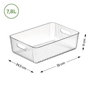 Organize com estilo e praticidade com a Cesta Maxi 7,8L New Retrô! Com o acabamento canelado que é tendência, esta cesta oferece organização e elegância em qualquer ambiente. Suas dimensões de 35 x 24,5 x 11 cm são ideais para armazenar objetos e mantimentos maiores, tornando-a perfeita para a lavanderia, despensa ou quarto. Feita em PET, um material ultra-resistente e durável, e com a aparência do vidro, mas com a resistência do plástico, a Cesta Maxi New Retrô é prática e fácil de manter. Pode ser usada no freezer ou na geladeira e a limpeza é simples, com água e sabão neutro. Parte da linha New Retrô, com produtos 100% recicláveis, a Coza valoriza a sustentabilidade. Adquira sua Cesta Maxi 7,8L New Retrô e adicione praticidade e beleza à sua organização de forma sustentável!