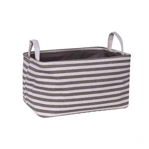 A Cesta organizadora com alças listrada é multiuso e perfeita para manter a organização de livros, maquiagens, brinquedos, produtos de higiene etc. Com alça auxilia no transporte caso seja necessário.