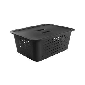 Cesta Organizadora Preto 14,5 L com Tampa 41 x 31,5 x 17 cm Ou - Na sua casa