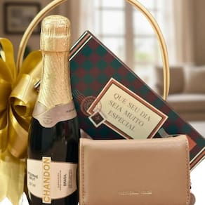 Cesta Presente Chandon Baby + Chocolate + Carteira Feminina Cesta Chandon Baby com Chocolate e Carteira Feminina - presente completo e elegante Surpreenda com um presente pronto para entregar. A cesta Decorally Home Decor combina Chandon Baby 187 ml, chocolate premium e uma carteira feminina cores , tudo em uma cesta com alça e acabamento dourado. Vai embalada para presente com celofane, laço caprichado e tag para mensagem - perfeita para aniversários, fim de ano, clientes, colaboradoras e amigos-secretos. Conteúdo da Cesta 1 Chandon Baby 187 ml 1 Chocolate marca pode variar: seleção premium 1 Carteira Feminina cores : preto, marrom, nude, off-white ou ouro velho 1 Cesta com alça aprox. 20 13 cm Embalagem para presente com laço + tag para recado As cores da carteira podem ser escolhidas Sim. Envie uma mensagem após a compra indicando a cor desejada. O envio é sujeito à disponibilidade. O chocolate e a embalagem são iguais às fotos Mantemos o padrão de qualidade, mas marcas/estampas podem variar conforme disponibilidade. Vai pronto para presentear Sim. Acompanha celofane, laço e tag. Enviamos dentro de caixa para proteção. Qual o tamanho da cesta Aproximadamente 20 13 cm medida da base, pode variar levemente . Existe cartão personalizado Incluímos tag para mensagem. Cartão maior pode ser adicionado mediante consulta. Há restrição de venda Sim. Bebida alcoólica: venda proibida para menores de 18 anos. Consumo responsável. Marca: Não Informado Ean: 7893687019785