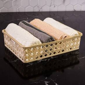 Linda Cesta retangular Média em plástico premium modelo palha indiana!