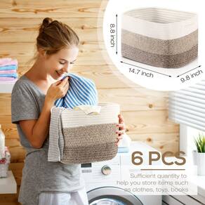 Características: Multifuncional: economize espaço. Qualquer um desses cestos de armazenamento pode ser aplicado não apenas como cesto de roupa suja, mas também como cesto de prateleira, cesta de brinquedos para cães, cesta de armazenamento de cobertores de sala de estar, cesta decorativa ou cesta de sapatos. Lavagem e transporte: Nossos cestos de tecido para organização podem ser dobrados repetidamente, e a boa elasticidade da corda de algodão garante que ela não seja deformada e quebrada. Lavável na máquina, mas geralmente preferimos lavar à mão ou a seco para evitar danificar o tecido. Especificações: Material: algodão Cor: marrom Tamanho: 14,8 x 9,8 x 8,9 polegadas/37,5 x 25 x 22,5 cm O pacote inclui: 6 cestas de tecido Notas: Medição manual, permita pequenos erros de tamanho. A cor pode ter uma pequena diferença devido às diferentes exibições na tela. - O que você receberá: você receberá 6 cestos de corda de algodão, adequados para manter sua vida diária organizada e também servir como decoração de quarto, em quantidade suficiente para atender às suas necessidades de uso e substituição - Tamanho adequado: a caixa de armazenamento decorativa mede 14,8" x 9,8" x 8,9", o que pode ajudar a organizar e economizar espaço. A grande capacidade é ótima para artes e ofícios, decoração de sala de aula, brinquedos infantis ou ofertas de acessórios de quarto muito espaço de armazenamento compacto - Material de qualidade: esses cestos de armazenamento para prateleiras são feitos de material de corda de algodão bem tecido, confiável e resistente, estável com superfície macia e substituto ideal para cestos comuns de vime, organizadores de armários de linho e cestos de armazenamento com tampas - Design elegante e exclusivo: a cesta para organização tem uma alça embutida, que tem uma aparência perfeita e prática; a alça usa três cordas trançadas, que são confortáveis, e você não ficará perdido mesmo segurando objetos pesados; As cestas de tecido para armazenamento adotam uma colcha de retalhos nas cores branco e marrom escuro, adicionando um toque de estilo ao seu espaço - Ampla aplicação: os cestos de corda de algodão para armazenamento são ideais para uso em residências, creches, salas de aula, banheiros, quartos, salas de jogos, lavanderias, etc., uma escolha ideal para guardar livros, cobertores, travesseiros, toalhas, roupas, brinquedos infantis e muito mais