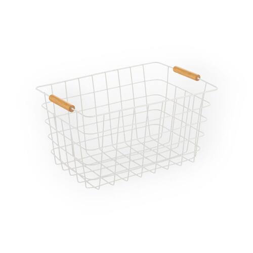Cesto aramado 24l com alca de bambu branco oikos Cesto aramado 24l com alca de bambu branco - oikos