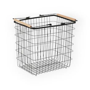 Cesto Aramado 47L Com Alca De Bambu Preto Oikos